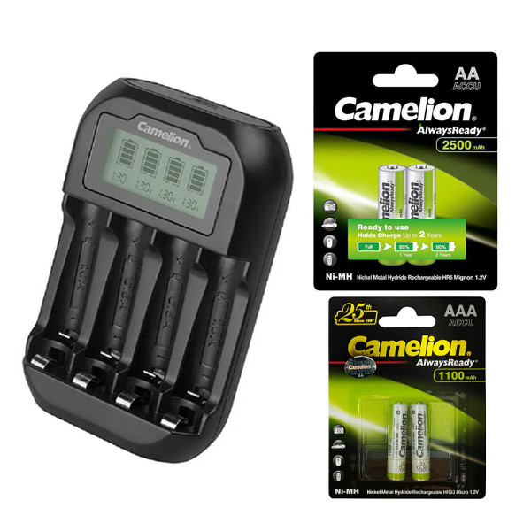 شارژر باتری کملیون مدل BC-1046 به همراه 4 عدد باتری قلمی و نیم قلمی شارژی