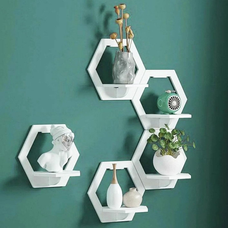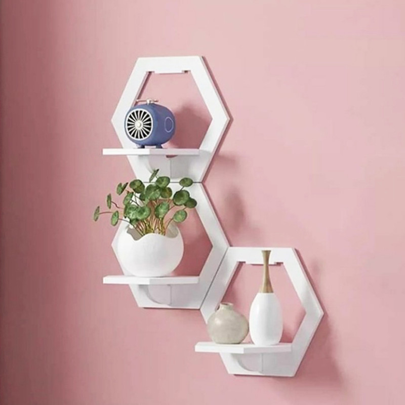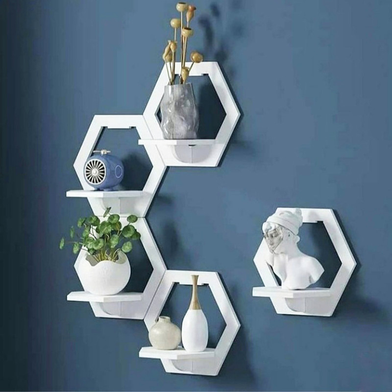 شلف دیواری خونه خاص مدل شش ضلعی مجموعه 5 عددی