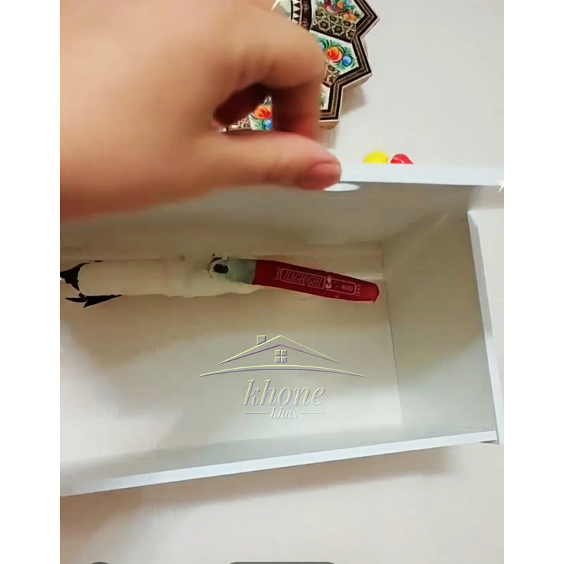 لطفا قبل از خرید به ابعاد موجود در عکس های محصول توجه شود _ ابعاد داخلی 38 در 22 سانتی متر با عمق 13 سانتی متر _ ابعاد خارجی 40 در 25 سانتی متر با عمق 15 سانتی متر _ این محصول فقط با برند خونه خاص عرضه می شود _ مونتاژ قطعات با خریدار محترم _ رنگ سفید جنس pvc قابل شستشو و سایر رنگها (نسکافه ای، قهوه ای و ...) جنس چوب mdf غیر قابل شستشو