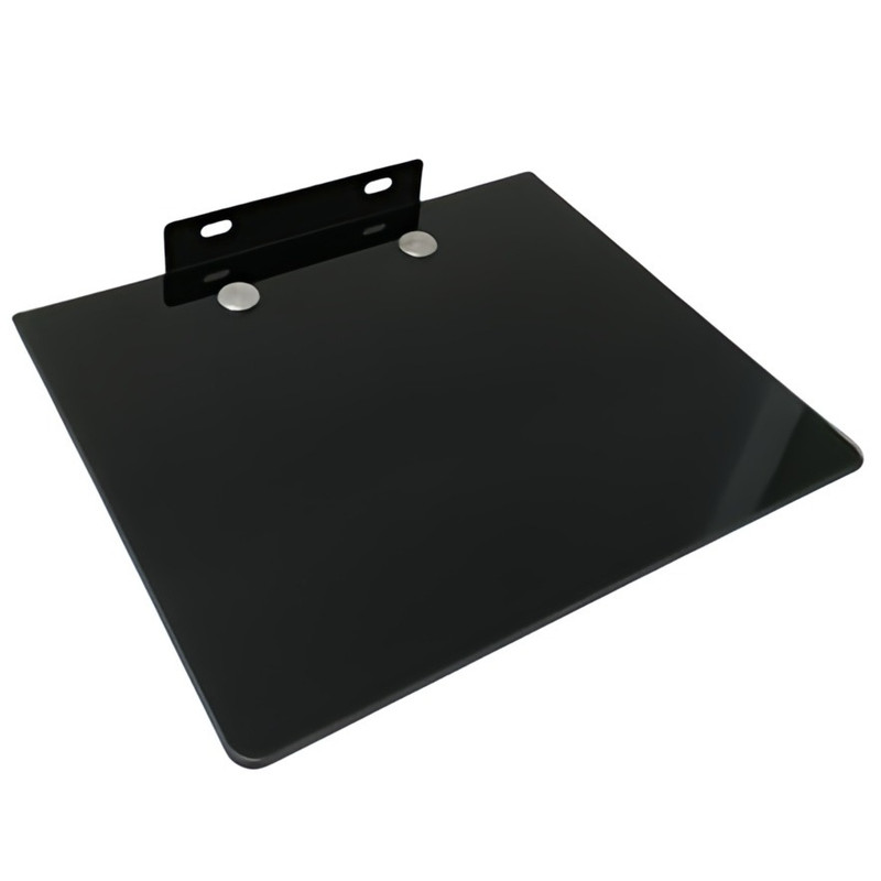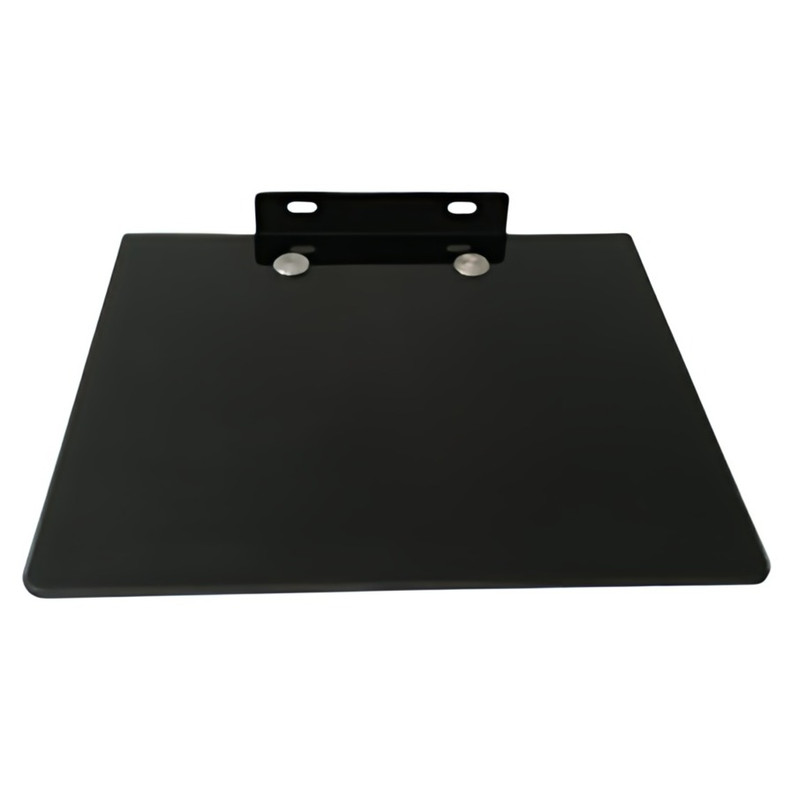 پایه از جنس فلز و طبقه از جنس شیشه سکوریت میباشد و قابلیت تحمل وزن تا ۱۰ کیلو را دارد و ابعاد شیشه : 30*25 و ابعاد پایه دیواری که به دیوار متصل میشود : 15*3 است .