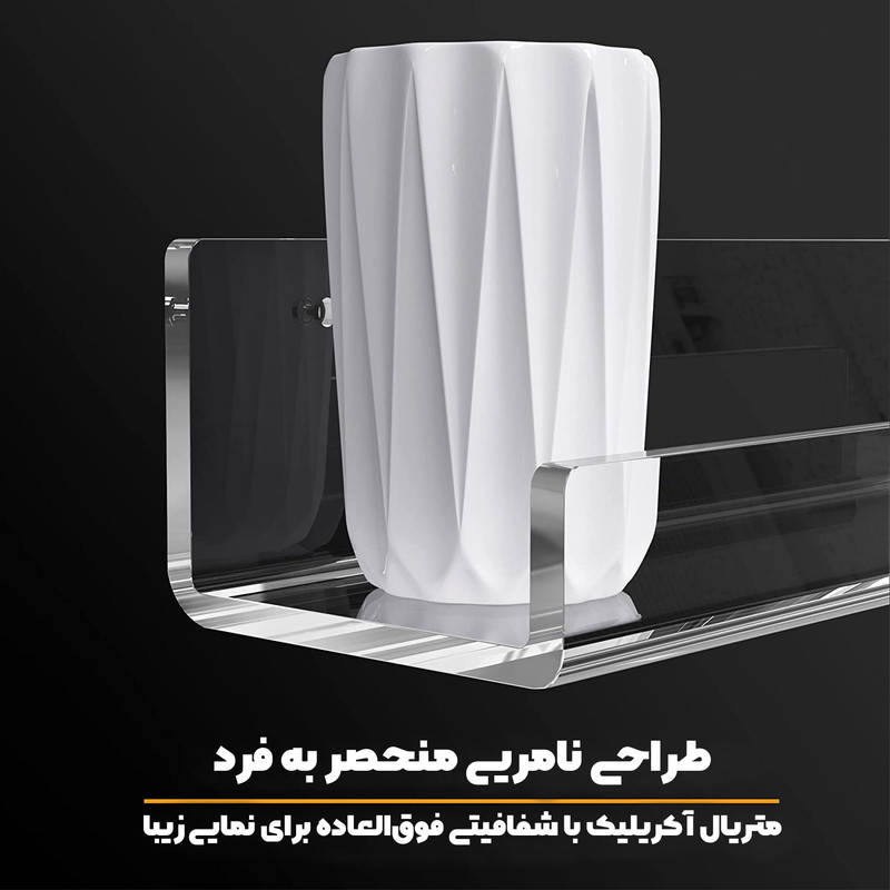 این شلف به هیچ وجه تغییر رنگ نخواهد داد و متریال آن از اکریلیک وارداتی تولید شده است. هولوگرام انحصاری هانیکار بر روی شلف نشان اصالت کالا است.