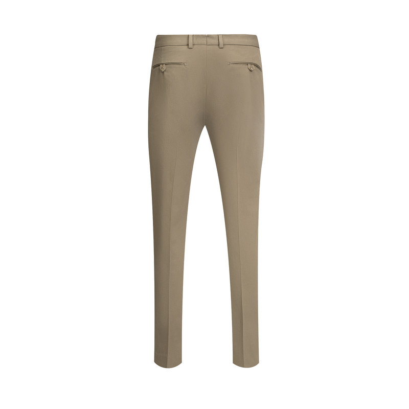شلوار کتان، پیش کار تک دکمه، دارای جیب پاکتی، دارای بند کمر جهت استفاده از کمربند، دارای 3% الاستین جهت راحتی بیشتر