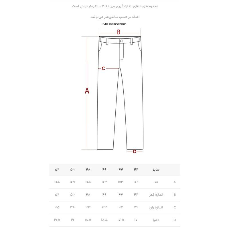 طرح پارچه سوزنی/جنس پارچه 98% کتان 2% کش/استایل Slim fit/دارای دو جیب جلو و دو جیب پشت/کد محصول 10151