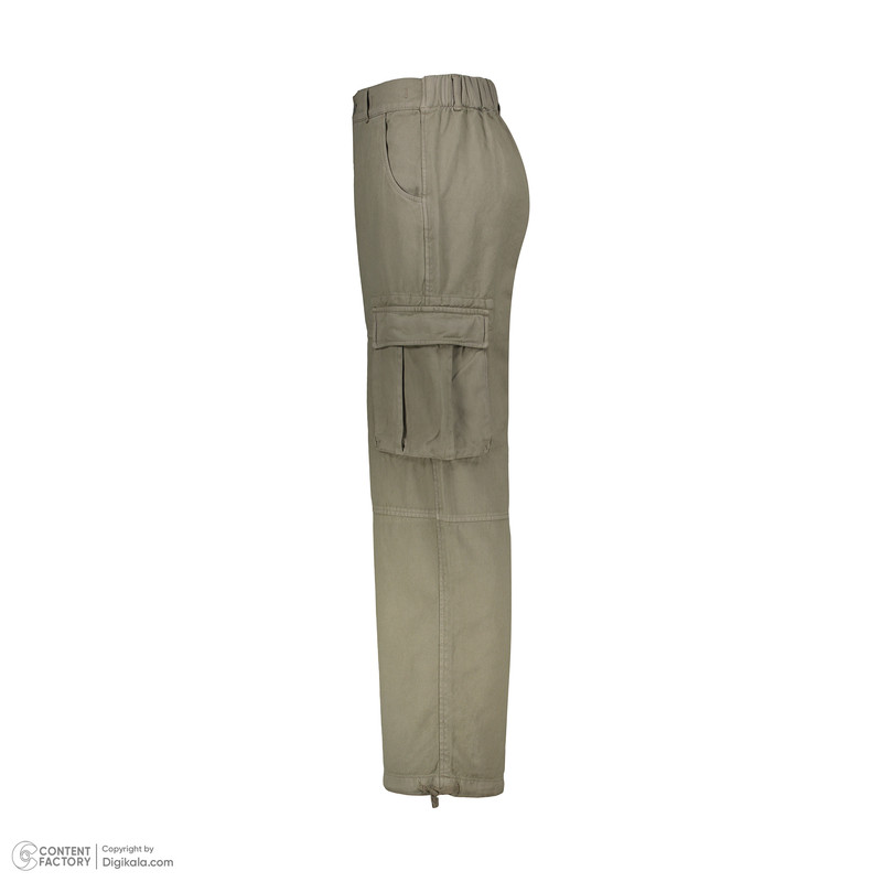 شلوار شش جیب / صد در صد کتان / دمپا نسبتا گشاد دارای کش تنظیم شونده / رنگ سبز تیره