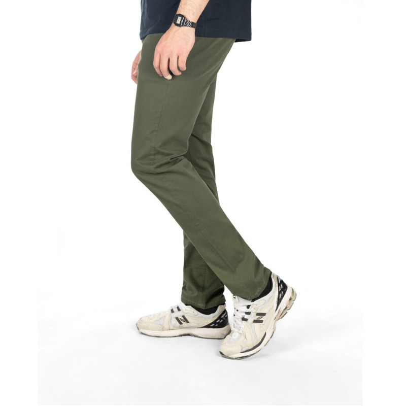 این شلوار از جنس پارچه ی کتان، که یکی از بهترین پارچه ها برای تولید لباس است، می باشد. مدل شلوار، راسته می باشد. با زیپ و دکمه بسته می شود و دارای دکمه ی اضافه و دو جیب در جلو و دو جیب در پشت است.