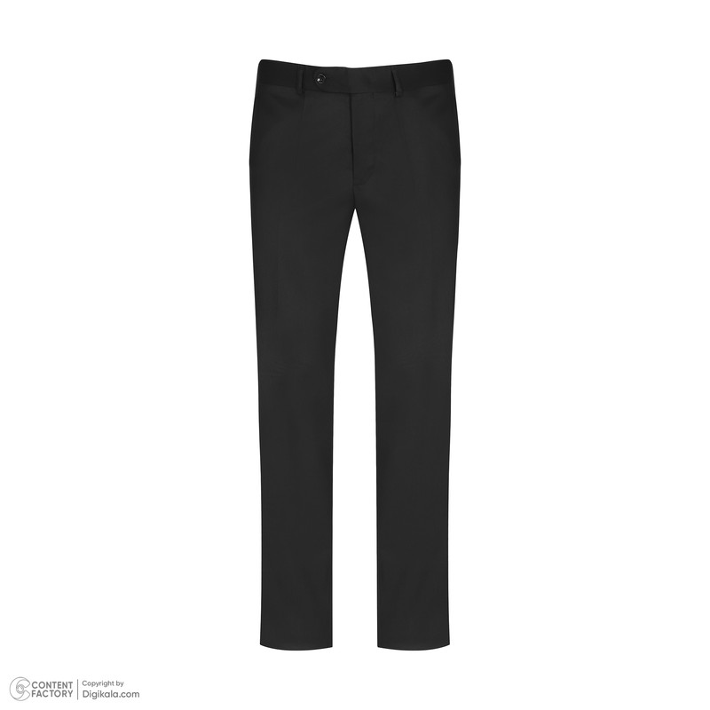 جنس: فاستونی - پلی استر ویسکوز + لاکرا (کش) / ضخامت متوسط/ نحوه بسته شدن دکمه و زیپ + قزن / استایل راسته کلاسیک / دمپا معمولی/ رنگ مشکی
