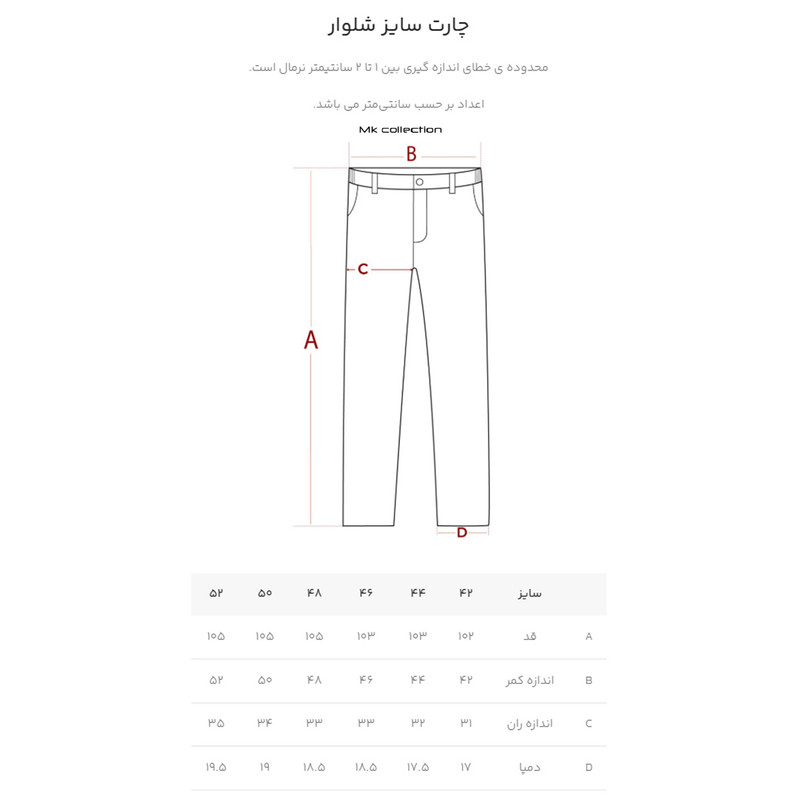 طرح پارچه ای ساده/مدل شلوار تک پیله/جنس پارچه 98% پلی ویسکوز 2% کش/استایل Slim fit/دارای دو جیب جلو و دو جیب پشت/کد محصول 2134