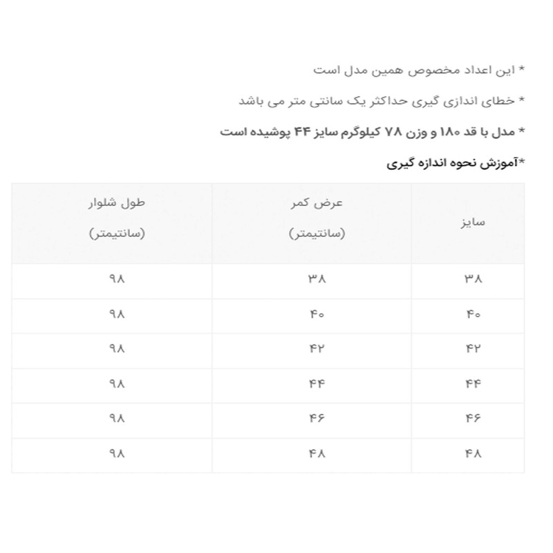 مدل با قد 180 و وزن 78 سایز 44 پوشیده است