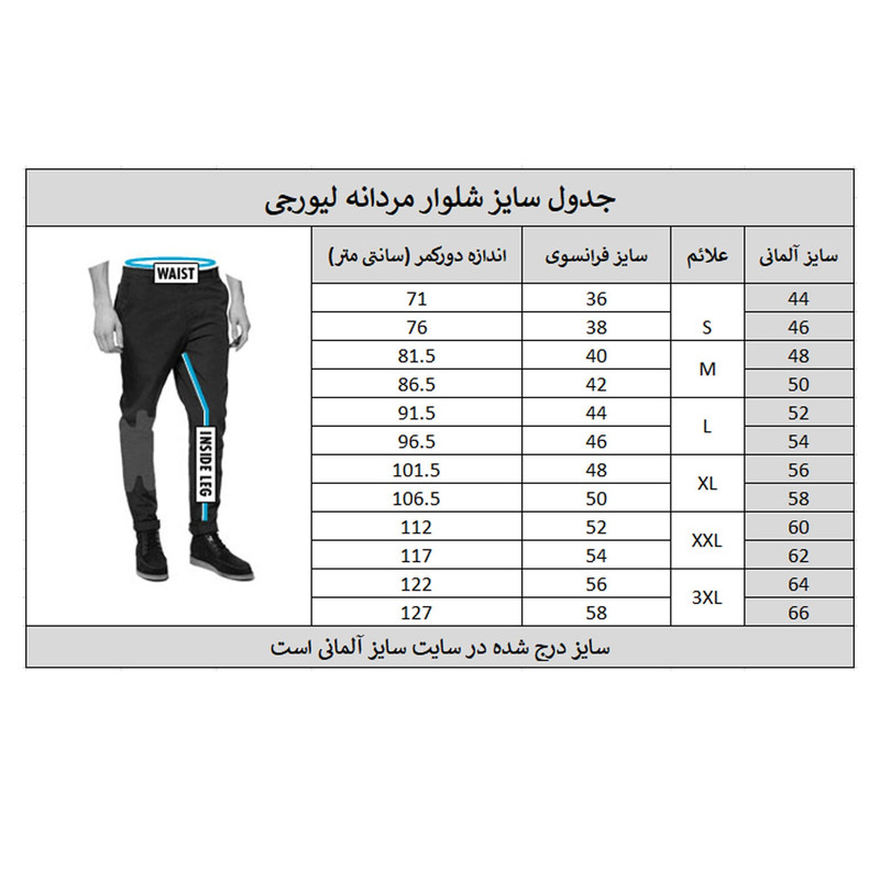 توجه: جدول ارائه شده بر اساس سایز دور کمر است. در این محصول عرض کمر از روی شلوار به شرح ذیل است