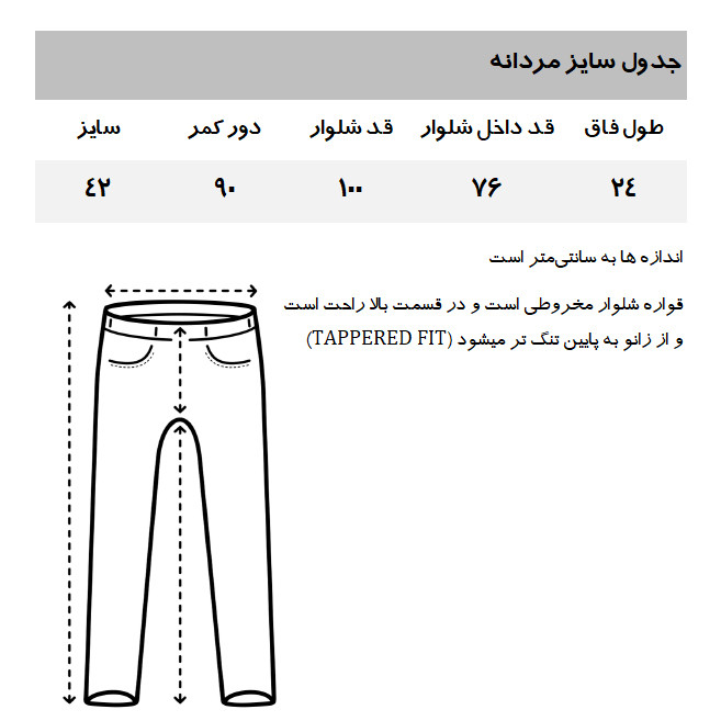 جهت انتخاب سایز مناسب به جدول راهنمای سایز در عکسها مراجعه نمایید