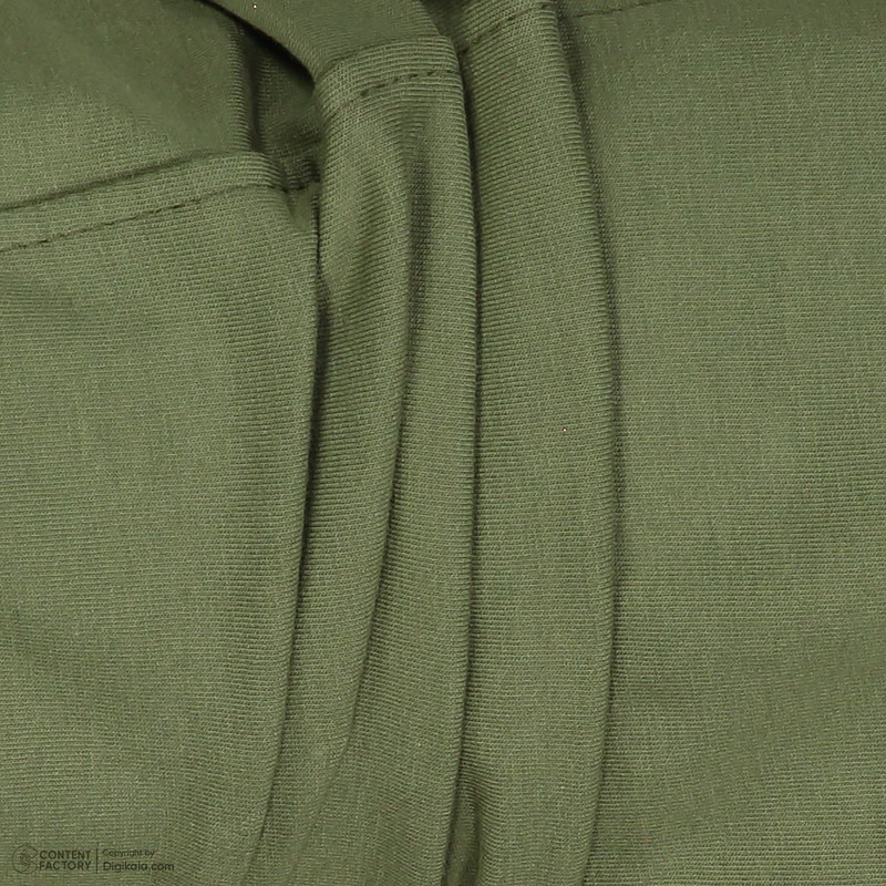 جنس تریکو / 35 درصد پلی استر - 65 درصد کتان / کمرکشی (دارای بند تنظیم اندازه) / دمپا معمولی / زیردست لطیف و راحت / ضخامت متوسط / رنگ سبز