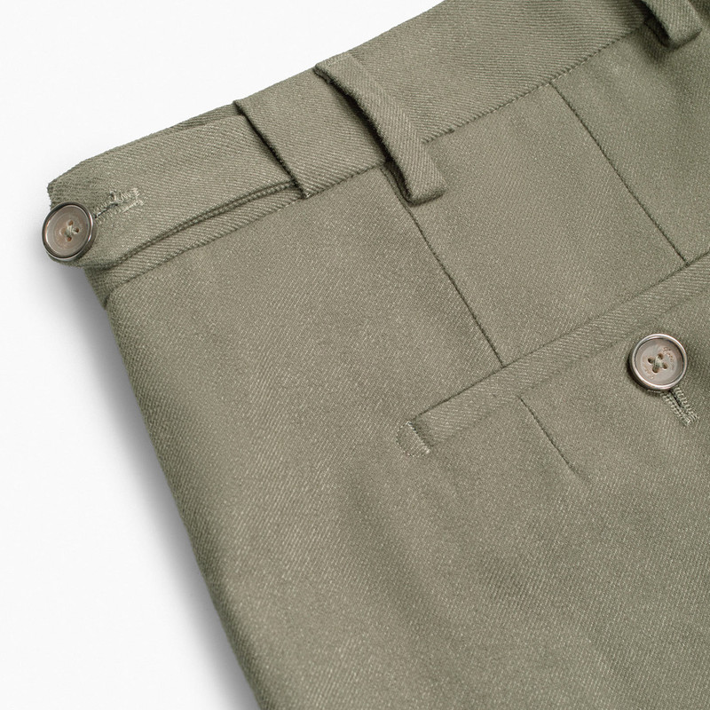 شلوار پارچه ای، پیش کار تک دکمه، دارای کمربند جهت فیت کردن دور کمر، دارای 2% الاستین جهت راحتی بیشتر