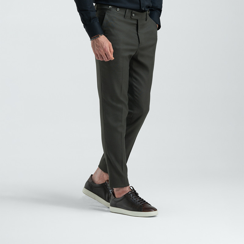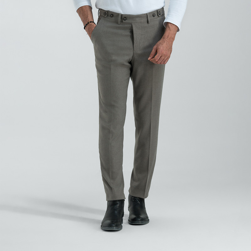 طرح پارچه ای سوزنی/جنس پارچه 98% پلی ویسکوز 2% کش/دارای دو عدد پاگون نمایشی روی دو طرف کمر شلوار/استایل Slim fit/دارای دو جیب جلو و دو جیب پشت/کد محصول 2/135
