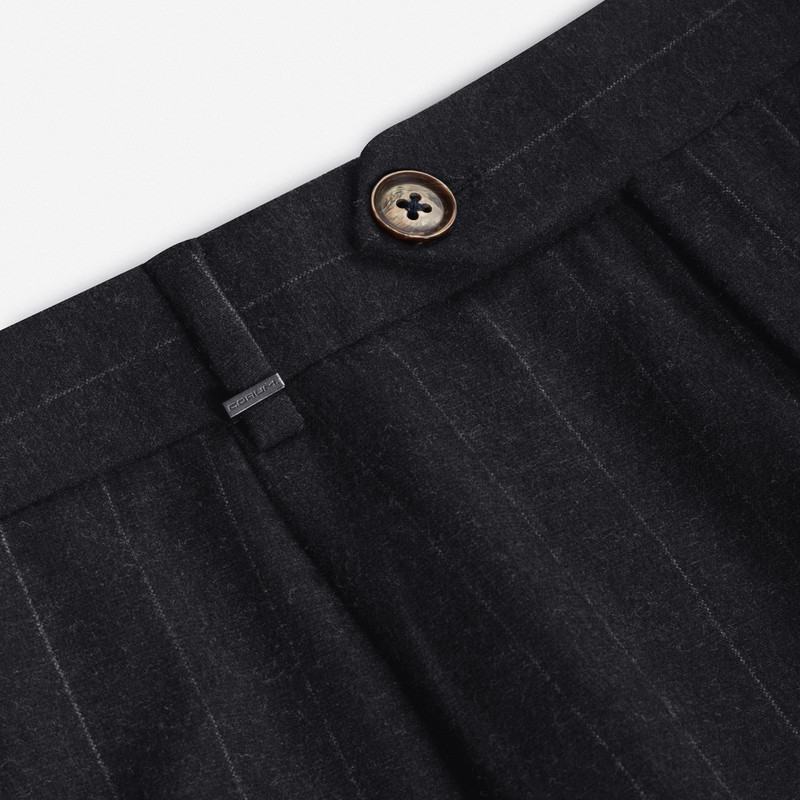 شلوار پارچه ای، پیش کار دکمه و قزن دار، دارای 4 جیب، دارای پیله، دمپا دوبل پاکتی، دارای 4% الاستین جهت راحتی بیشتر