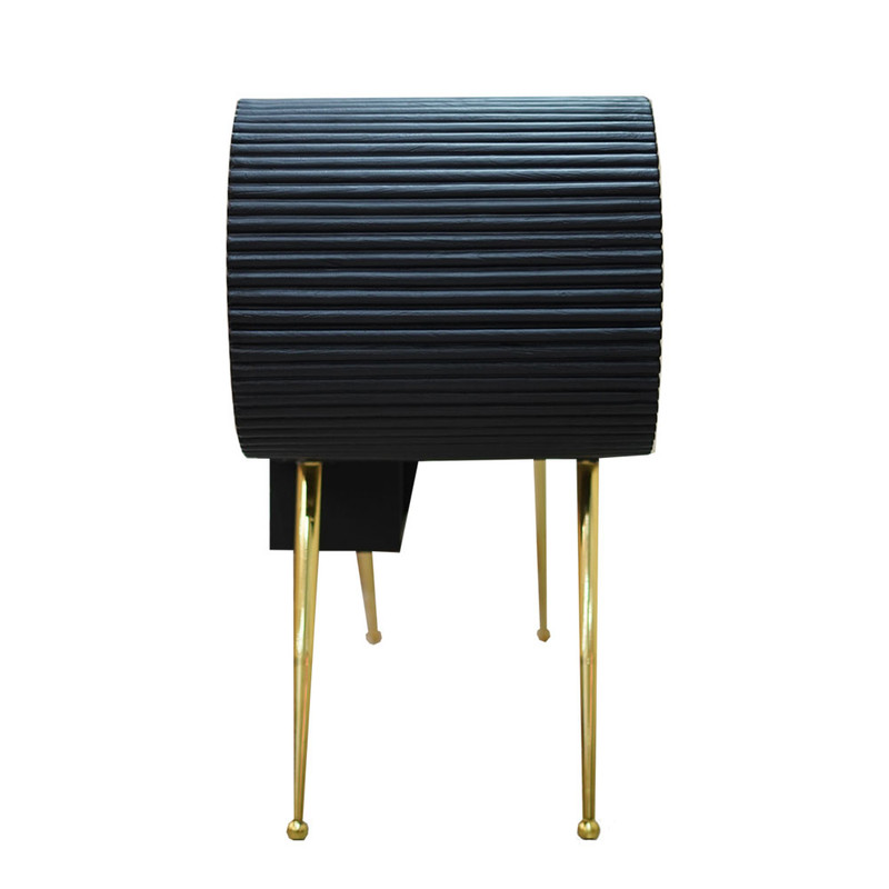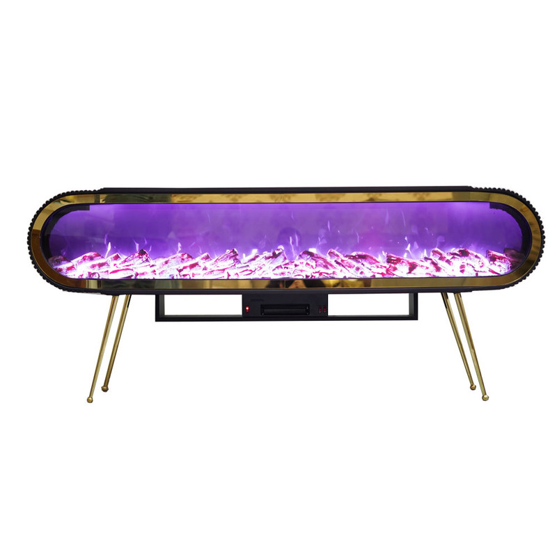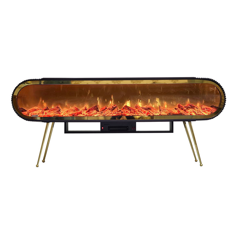 جنس میز تلویزیون ام دی ام بوده و حاشیه و پایه آن طلایی می باشد .درشومینه برقی از شیشه سکوریت ، موتور اورجینال ، بی صدا بدون لرزش و از سیم نسوز در هیتر و فن با رعایت نقاط ایمنی ایزو استفاده شده است . این میز تلویزیون دارای یک طبقه برای گذاشتن رسیور می باشد و یک هیتر برقی از جلو مجهزند که با استفاده از سیستم کانوکشن کل فضای اتاق را به صورت یکسان گرم نگه می دارد. دارای کنترل از راه دور است که شما میتوانید با استفاده از کنترل، نور و حرارت آن را کم و زیاد کنید . رنگ قطعات الکترو استاتیک کوره ای و رنگ شعله چند رنگ می باشد .در دو رنگ مشکی و سفید موجود می باشد .