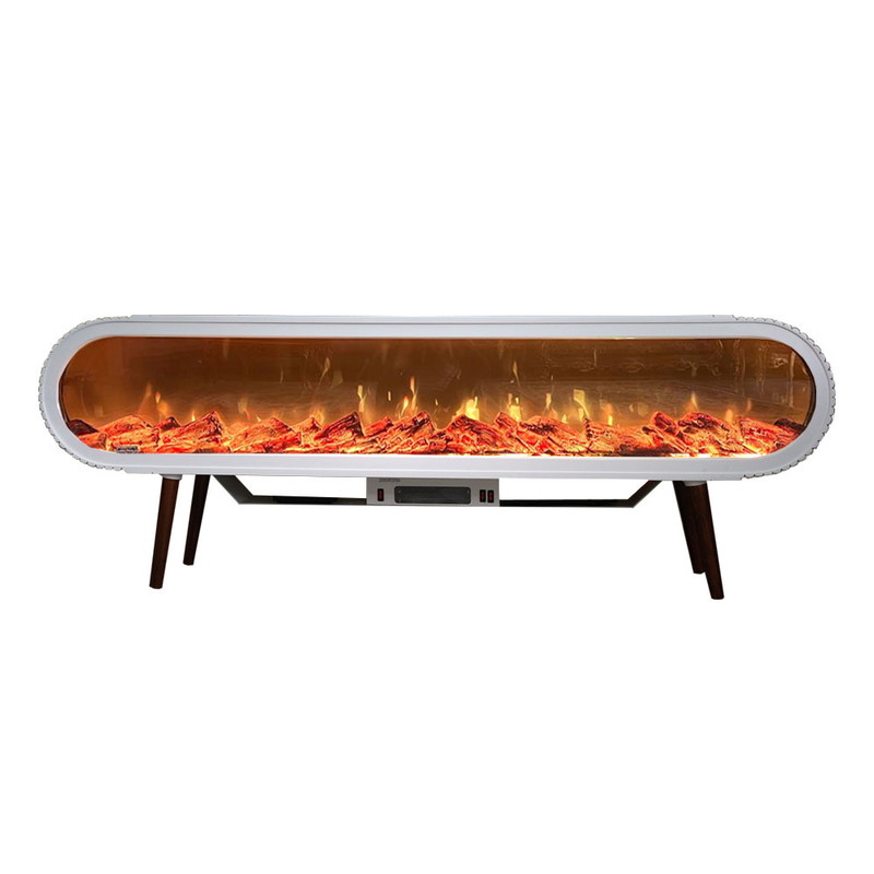 جنس میز تلویزیون ام دی ام بوده و پایه آن طرح چوب می باشد .درشومینه برقی از شیشه سکوریت ، موتور اورجینال ، بی صدا بدون لرزش و از سیم نسوز در هیتر و فن با رعایت نقاط ایمنی ایزو استفاده شده است . این میز تلویزیون دارای یک طبقه برای گذاشتن رسیور می باشد و یک هیتر برقی از جلو مجهزند که با استفاده از سیستم کانوکشن کل فضای اتاق را به صورت یکسان گرم نگه می دارد. دارای کنترل از راه دور است که شما میتوانید با استفاده از کنترل، نور و حرارت آن را کم و زیاد کنید . رنگ قطعات الکترو استاتیک کوره ای و رنگ شعله چندرنگ می باشد . در دو رنگ مشکی و سفید موجود می باشد .