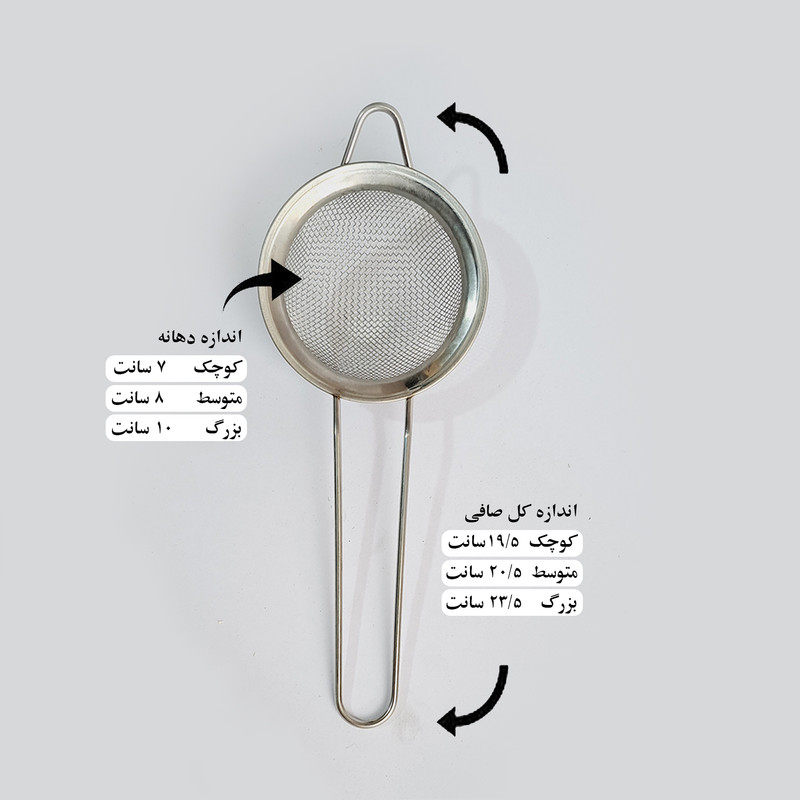 این صافی ها با سوراخ های ریز و متراکم طراحی و تولید شده است و دارای دو دسته جهت قرار گیر آسان بر روی دهانه ظرف می باشد. این صافی ها بهترین گیزنه برای جداسازی تفاله انواع چای و دمنش می باشند.