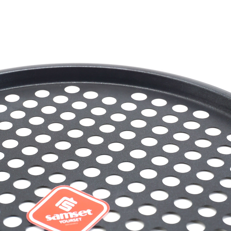 ظرف پخت پیتزا سام ست مدل مشبک همراه با پیتزا بر