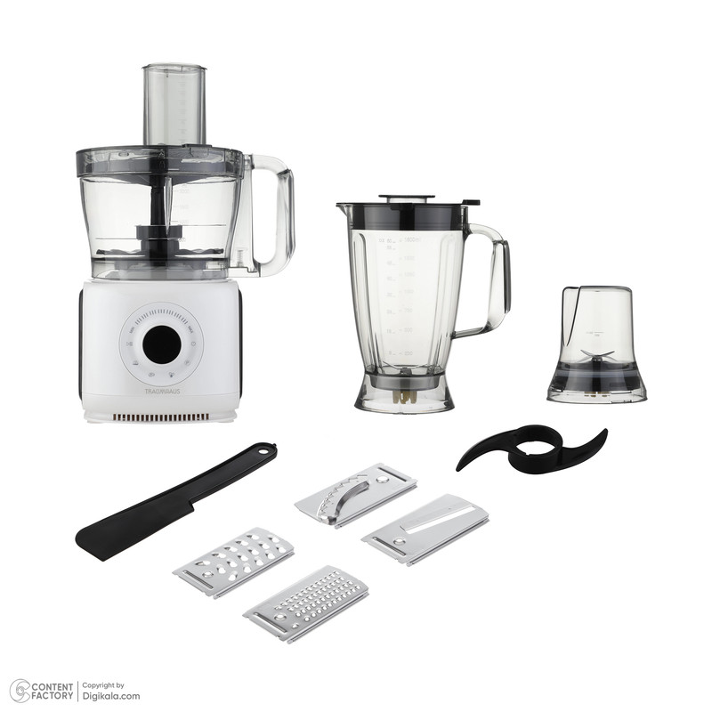 ولتاژ 240 – 220 ولت / فرکانس 60/50 هرتز / گنجایش کاری مخزن غذا سازی 2 لیتر/ غذا ساز چند منظوره / رنگ روکش سفید مرواریدی/ طرح چرم برای کناره های دستگاه/ قابلیت تنظیم 4 برنامه/ کلید ایمنی دوگانه/ ولوم چرخشی با پنل لمسی کنترل سرعت با عملکرد PULSE