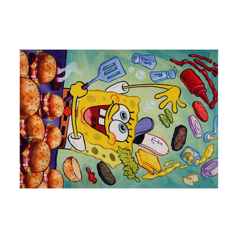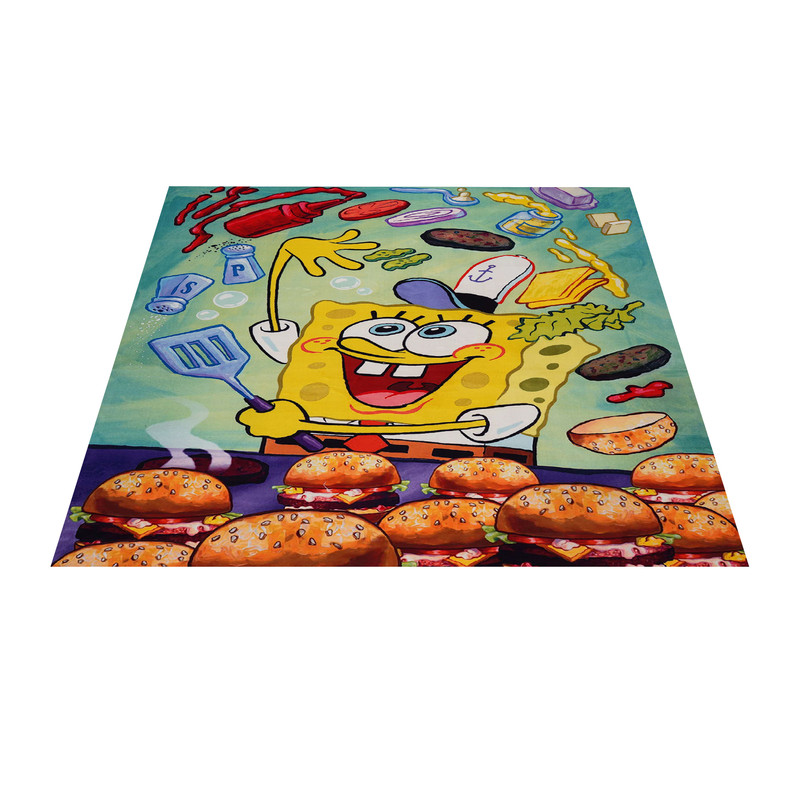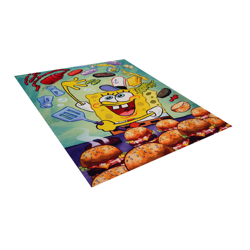فرش ماشینی زانیس مدل اتاق کودک طرح باب اسفنجی زمینه سبز