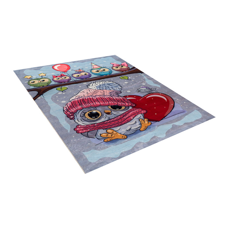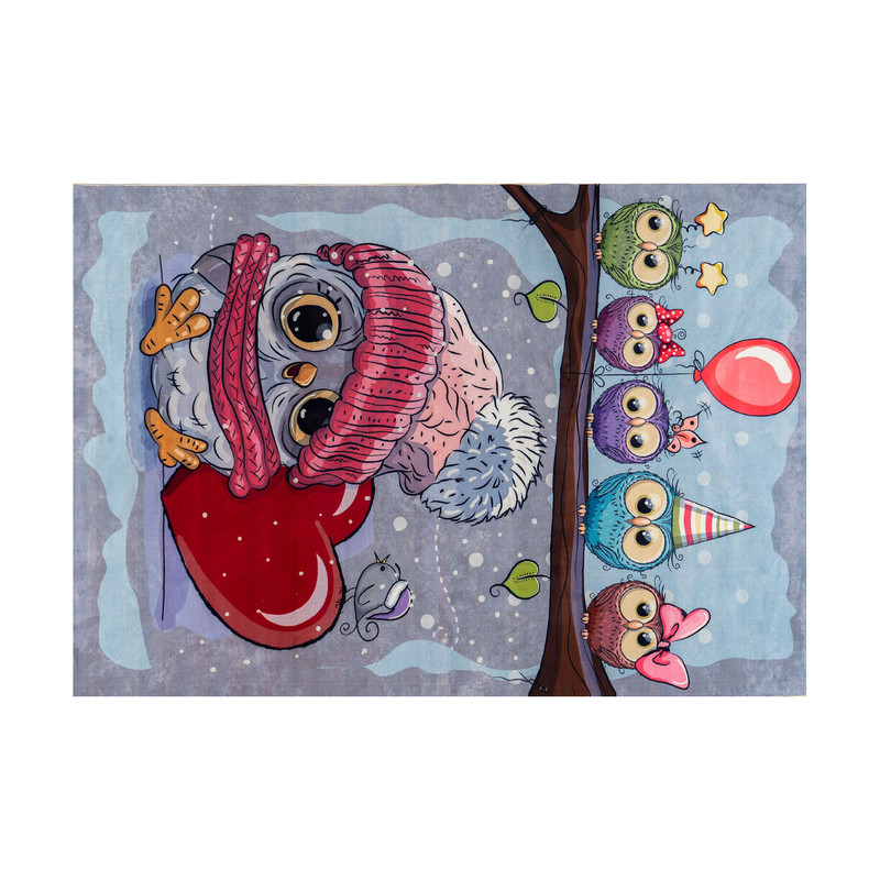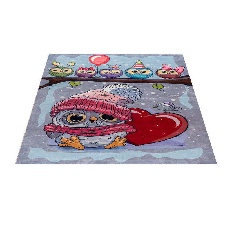 فرش ماشینی زانیس مدل اتاق کودک طرح جغدهای فانتزی زمینه طوسی