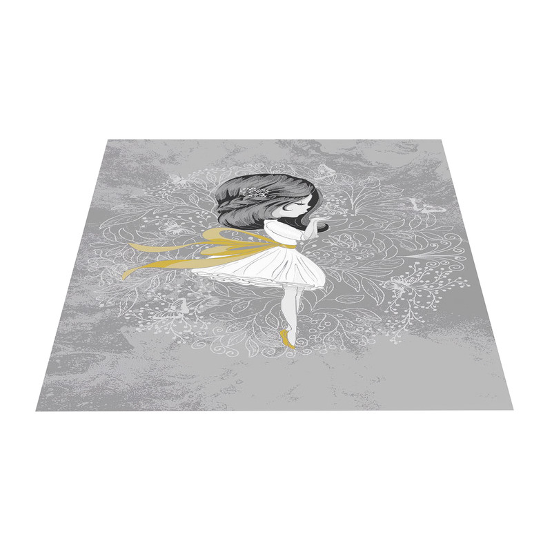 فرش ماشینی زانیس مدل اتاق کودک طرح دختر کوچولو زمینه طوسی