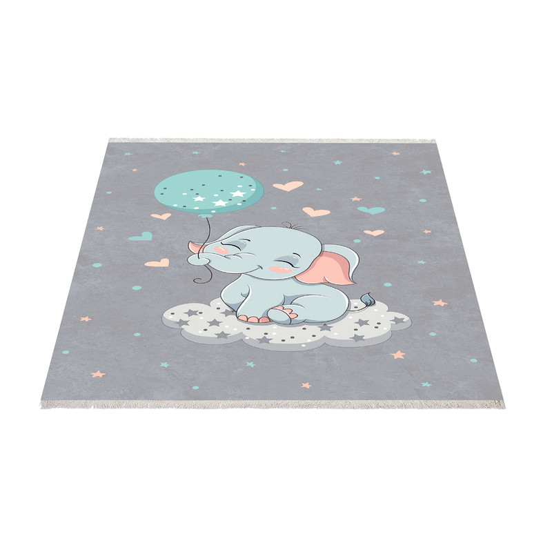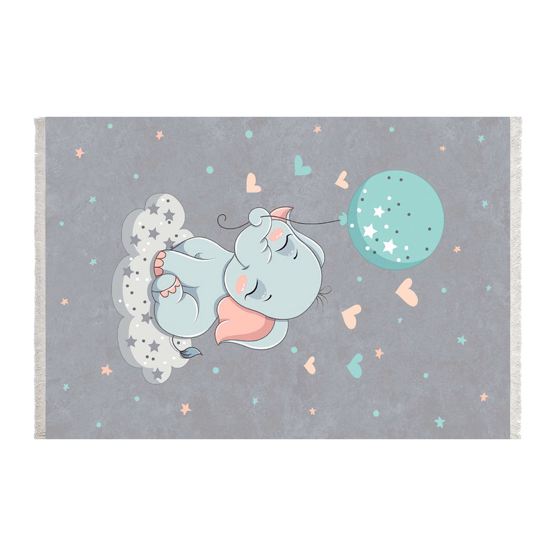 فرش ماشینی زانیس مدل اتاق کودک طرح فیل زمینه طوسی