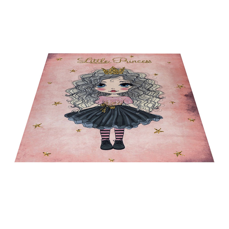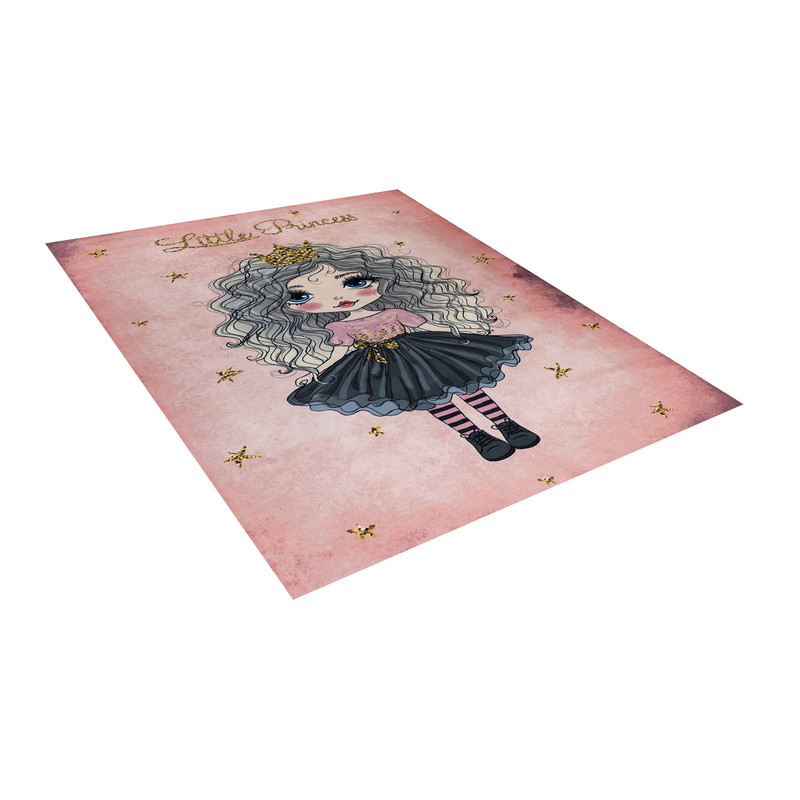 فرش ماشینی زانیس مدل اتاق کودک طرح پرنسس کوچولو زمینه گلبهی