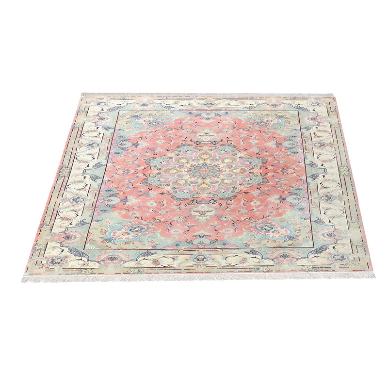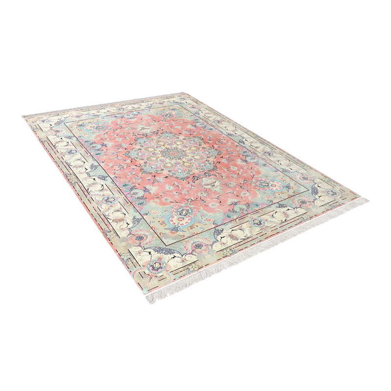 فرش ماشینی زانیس مدل سنتی طرح علیا تبریز زمینه صورتی
