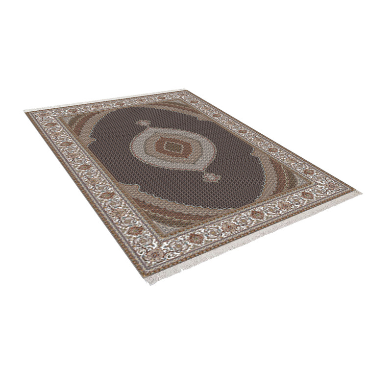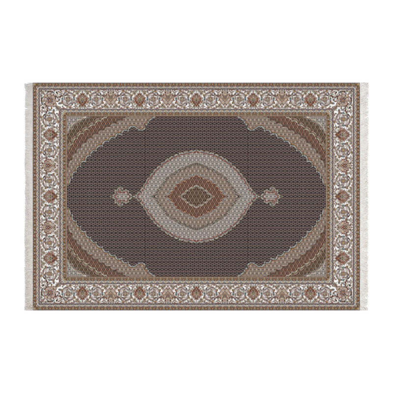 فرش ماشینی زانیس مدل سنتی طرح ماهی زمینه قهوه ای