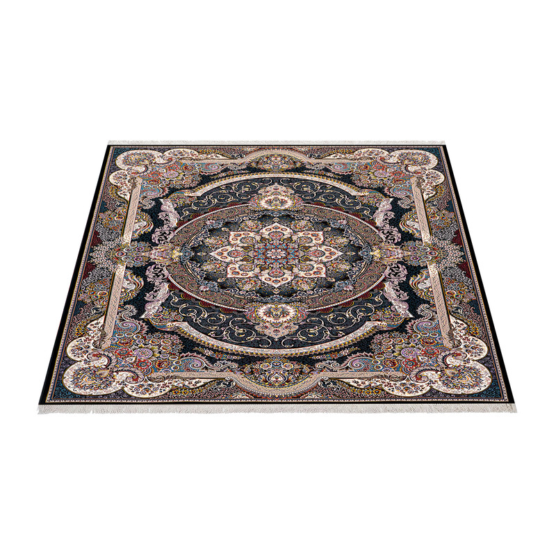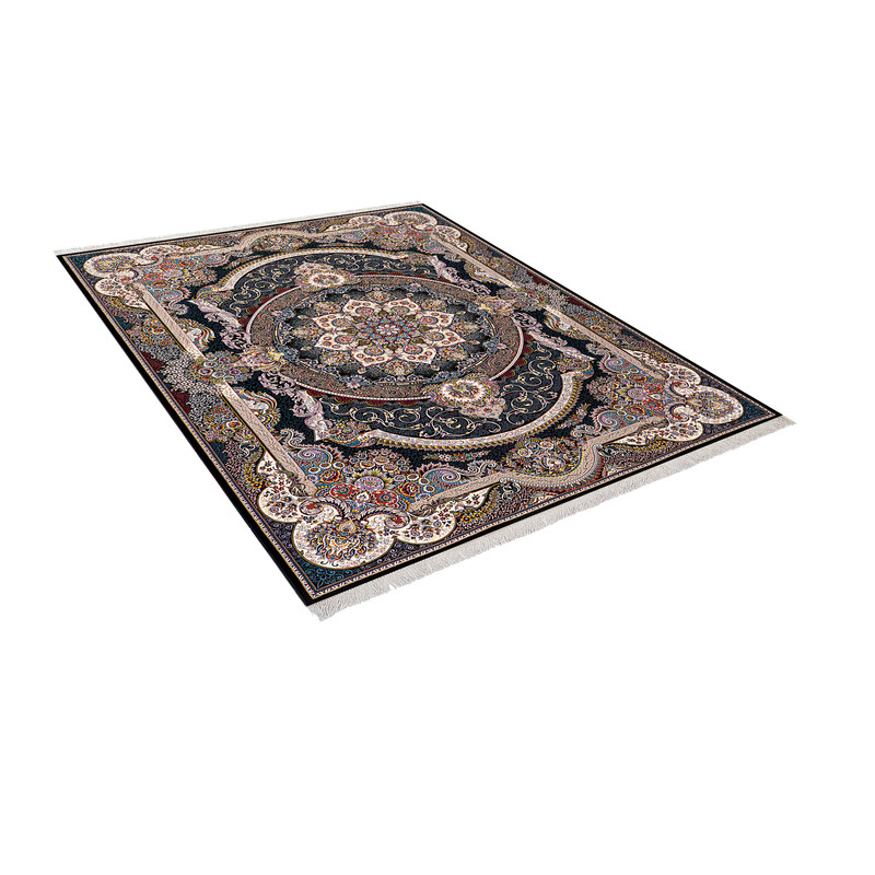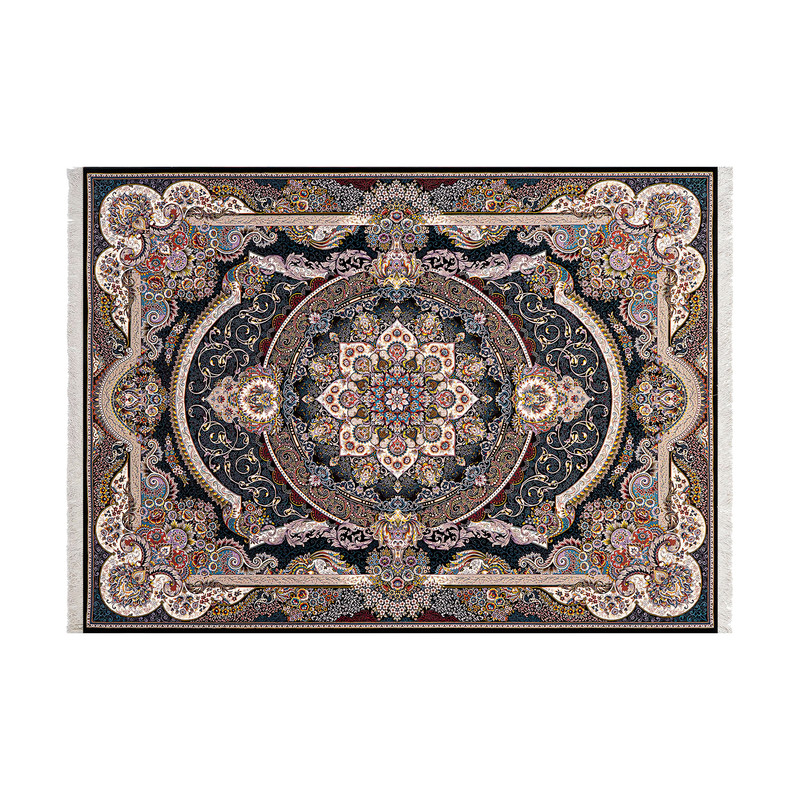 فرش ماشینی زانیس مدل فانتزی طرح سنتی مانا زمینه سرمه ای