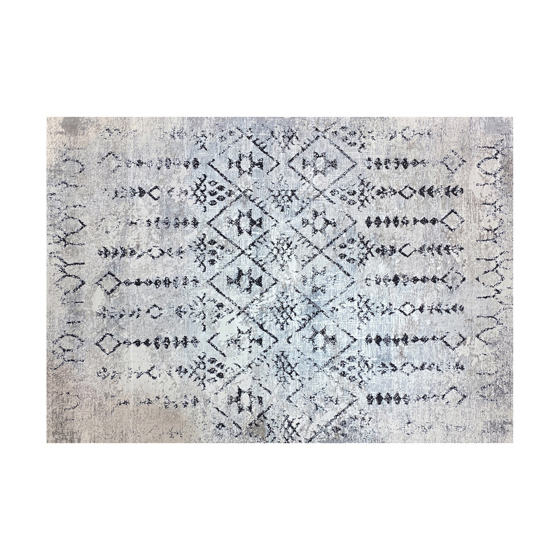 فرش ماشینی زانیس مدل فانتزی طرح عشایر زمینه طوسی