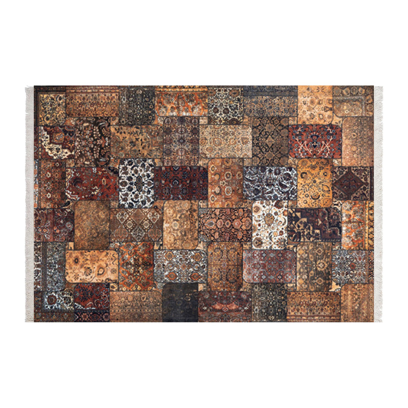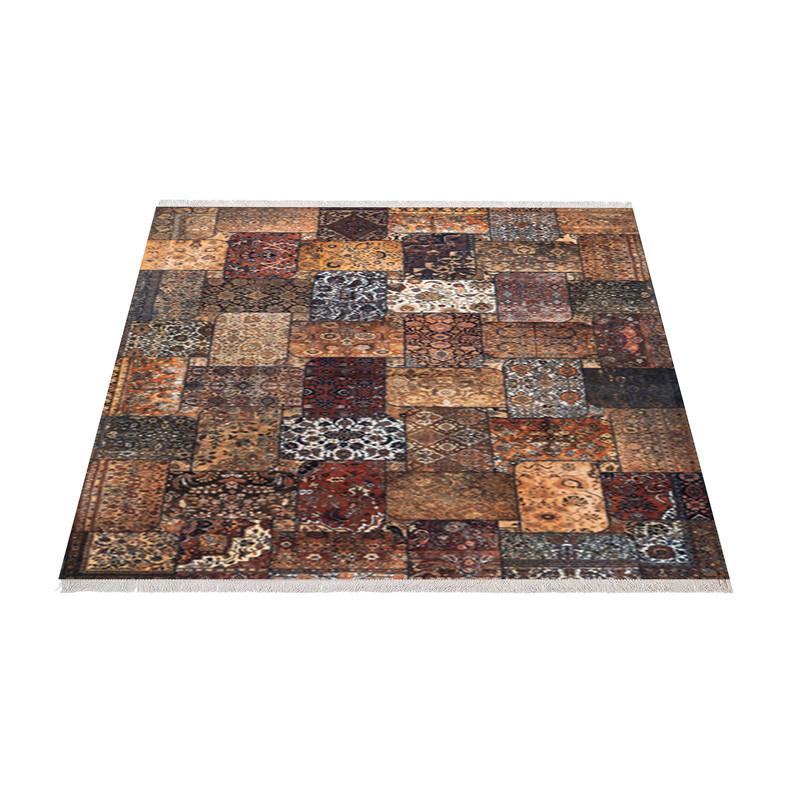 فرش ماشینی زانیس مدل مدرن طرح چهل تکه پتچورک زمینه قهوه ای