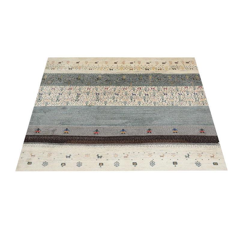 فرش ماشینی زانیس مدل مدرن طرح گبه بختیاری زمینه کرم