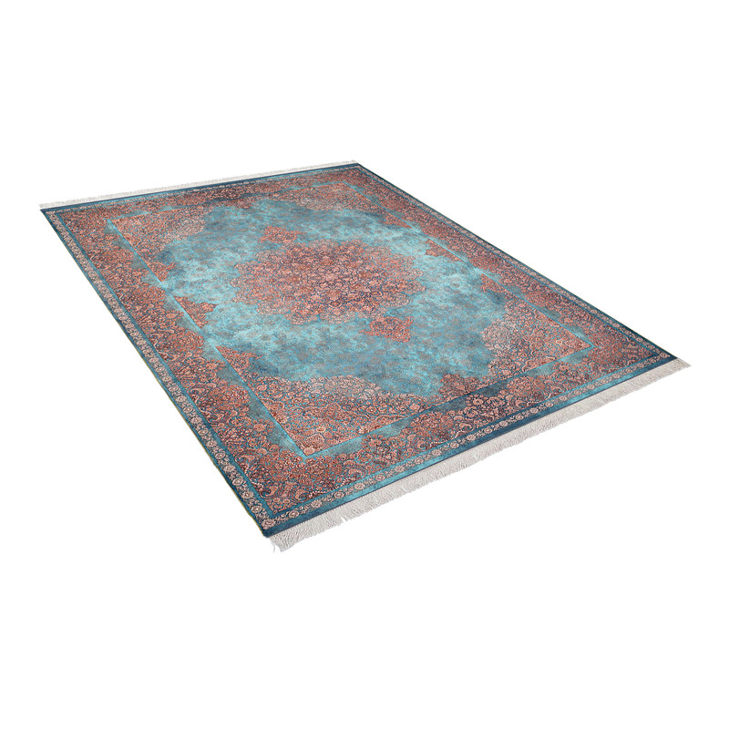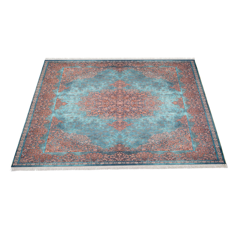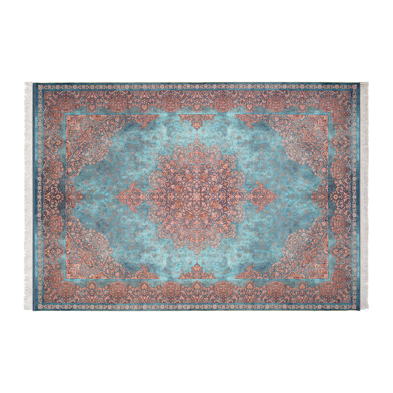 فرش ماشینی زانیس مدل وینتیج طرح فانتزی زمینه فیروزه ای