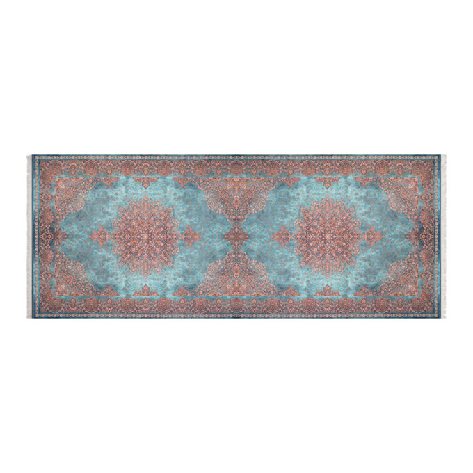 فرش ماشینی زانیس مدل کناره سنتی طرح تبریز زمینه فیروزه ای