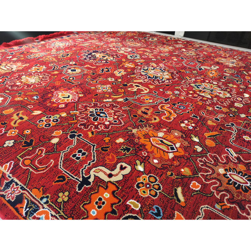 فرش ماشینی زمرد مشهد مدل کهنه نما زمینه لاکی