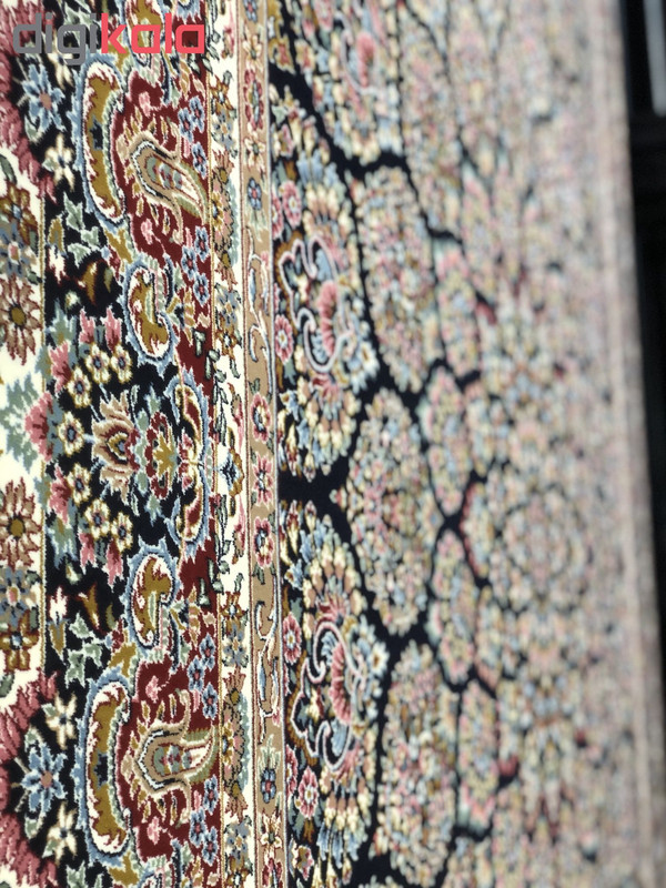 فرش ماشینی ستاره کویر یزد مدل ایساتیس کد AI-035 زمینه سورمه ای