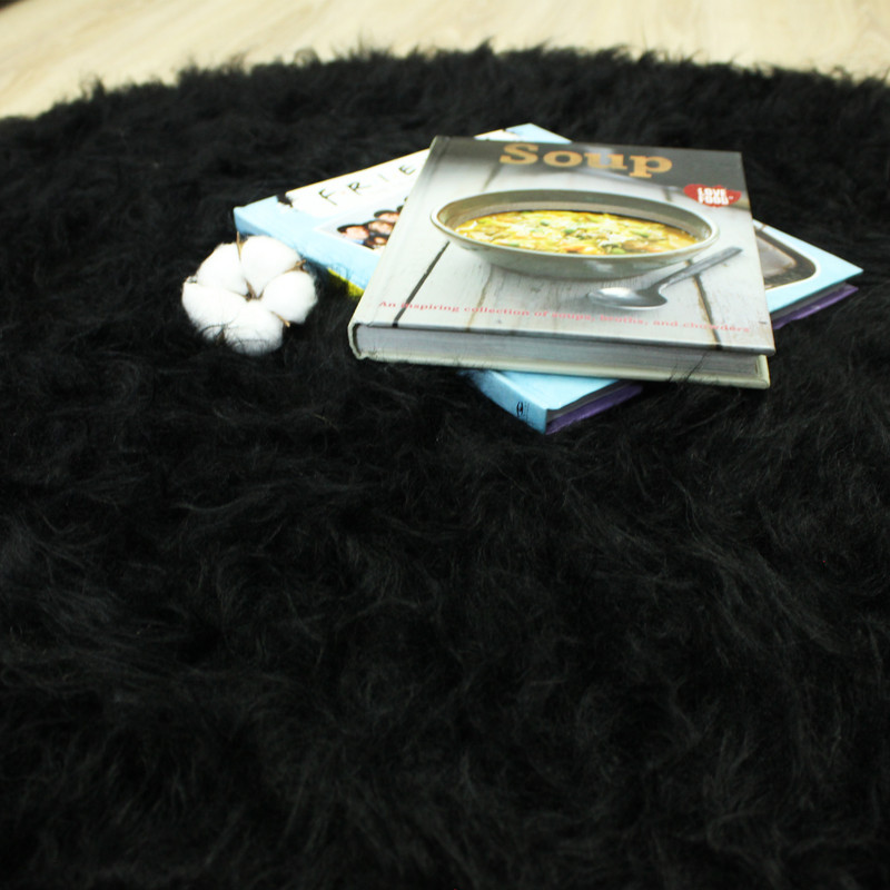 فرش ماشینی شاران هوم طرح خز پرزبلند فانتزی زمینه مشکی