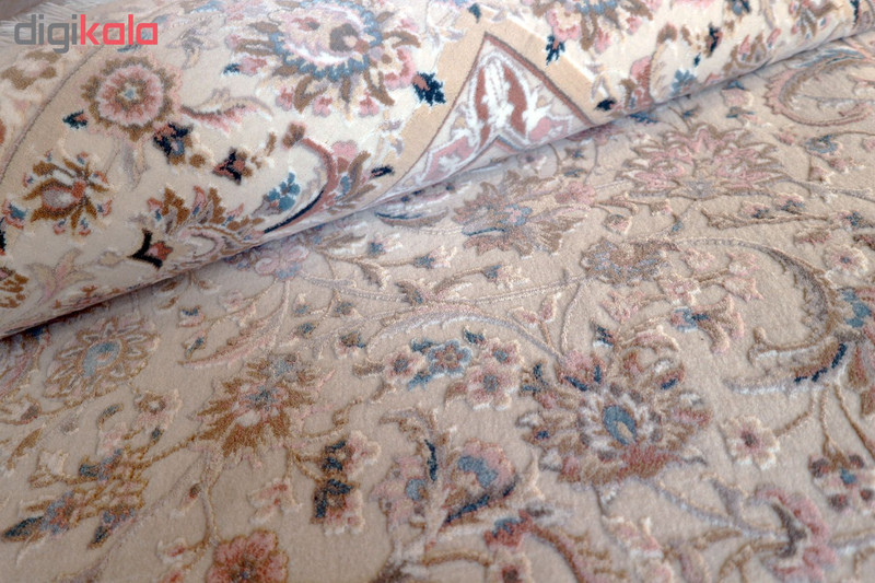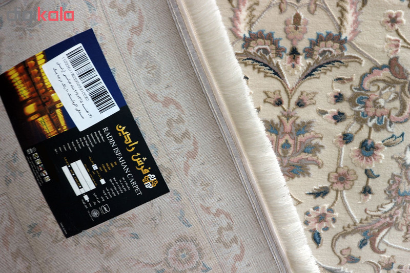 فرش ماشینی فرش رادین طرح شاه عباسی آرامش 2 زمینه رنگ زمینه صدفی