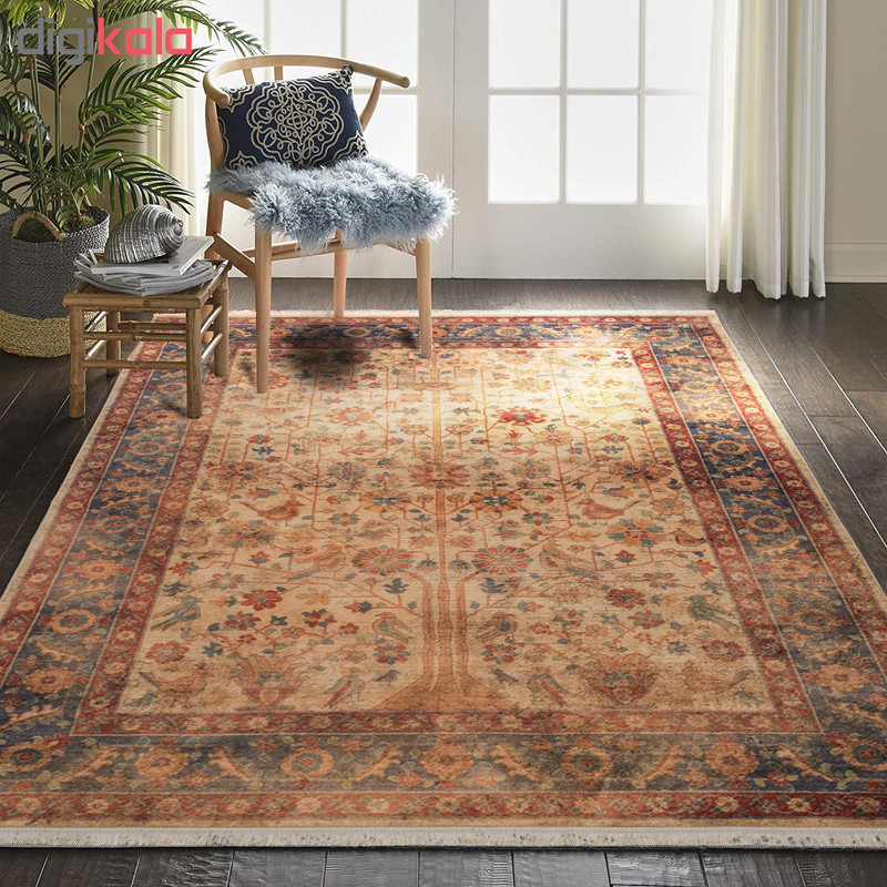 فرش ماشینی محتشم طرح کهنه نما کد 100623 زمینه کرم