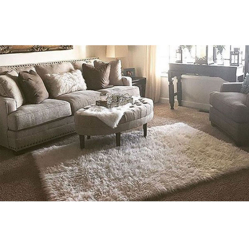 فرش ماشینی مدل شگی طرح رویال زمینه شیری