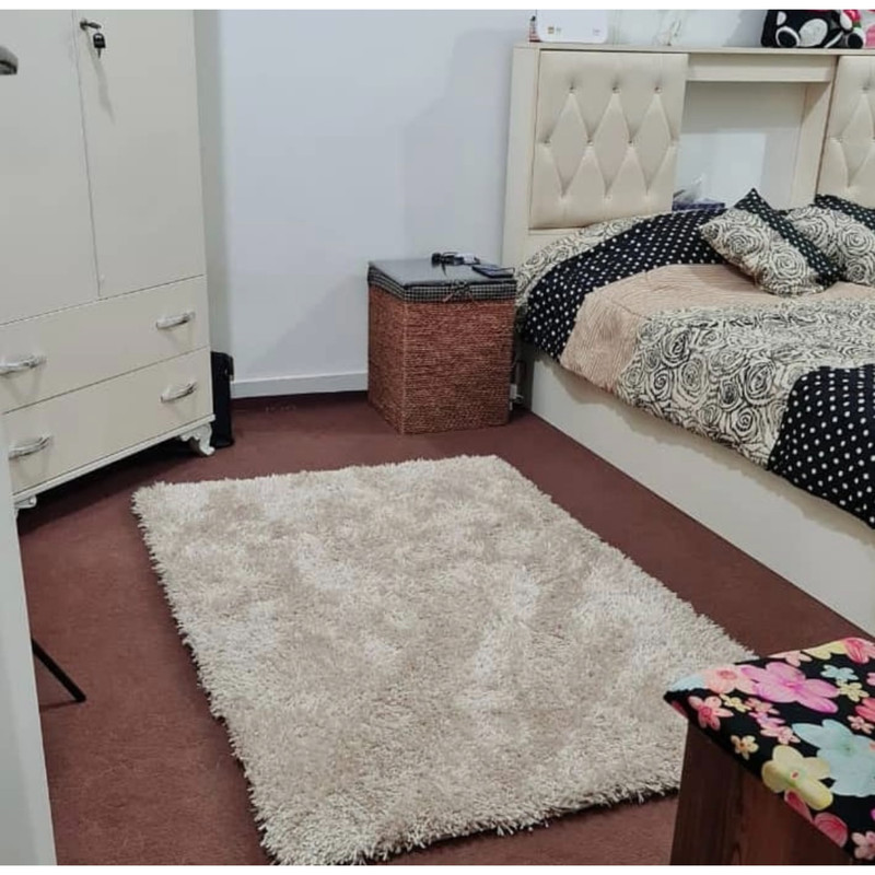 فرش ماشینی مدل شگی فلوکاتی طرح پرزبلند زمینه نسکافه ای