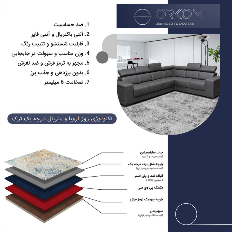 فرش ماشینی 1000 شانه اورکوم زمینه و حاشیه طوسی طرح مینیمال تینا کد OR.1112.02
