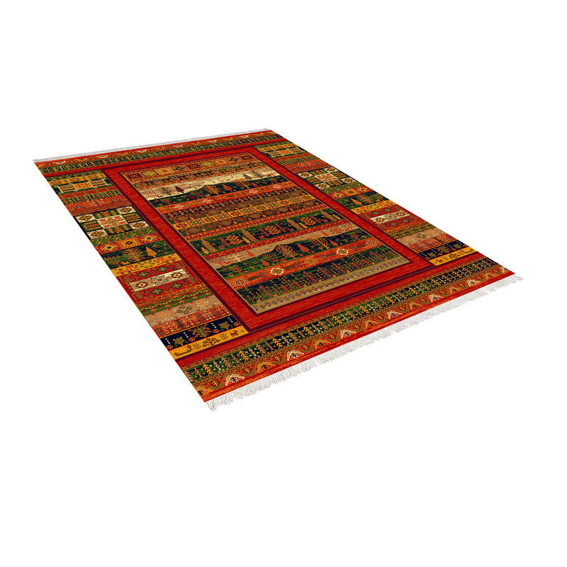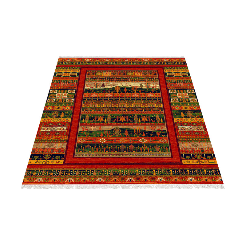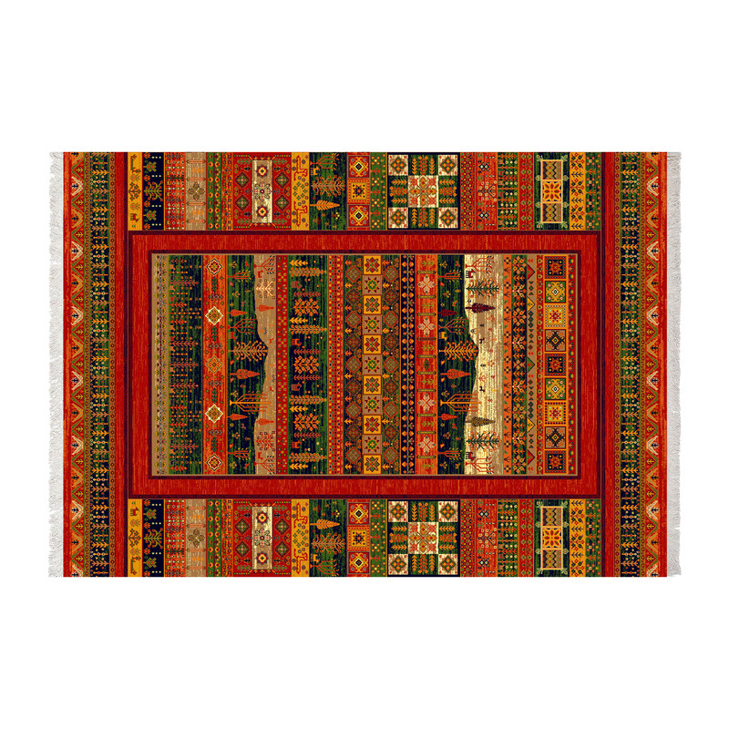 فرش ماشینی 1000 شانه زانیس زمینه قرمز لاکی حاشیه سبز کرم مدل چاپی