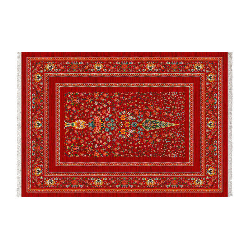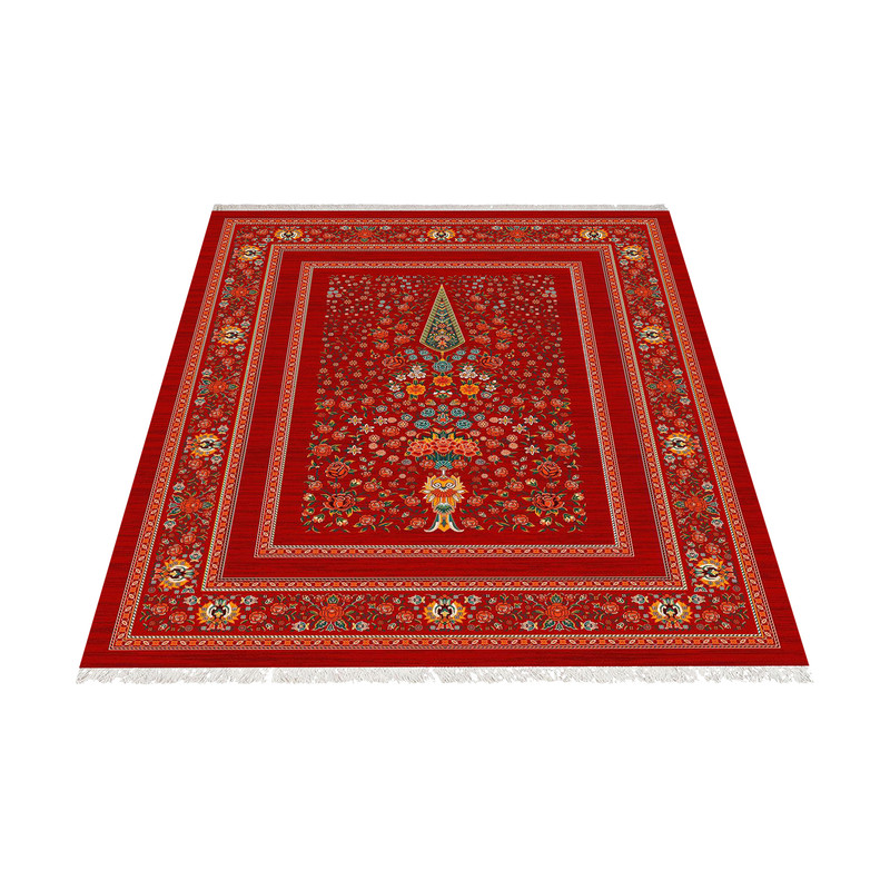 فرش ماشینی 1000 شانه زانیس زمینه قرمز لاکی حاشیه مشکی مدل چاپی