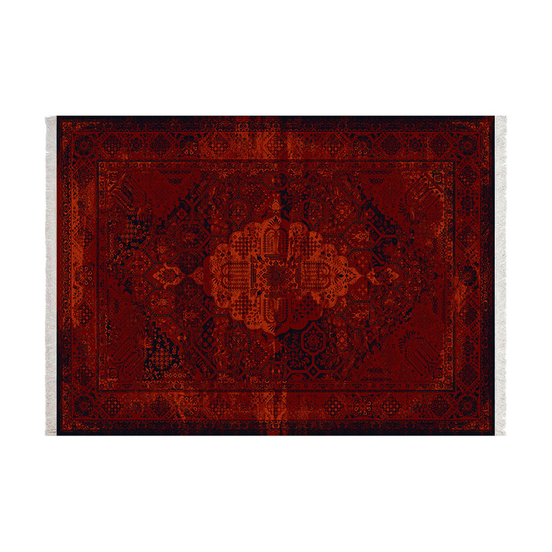 فرش ماشینی 1000 شانه زانیس زمینه قرمز لاکی حاشیه مشکی مدل چاپی