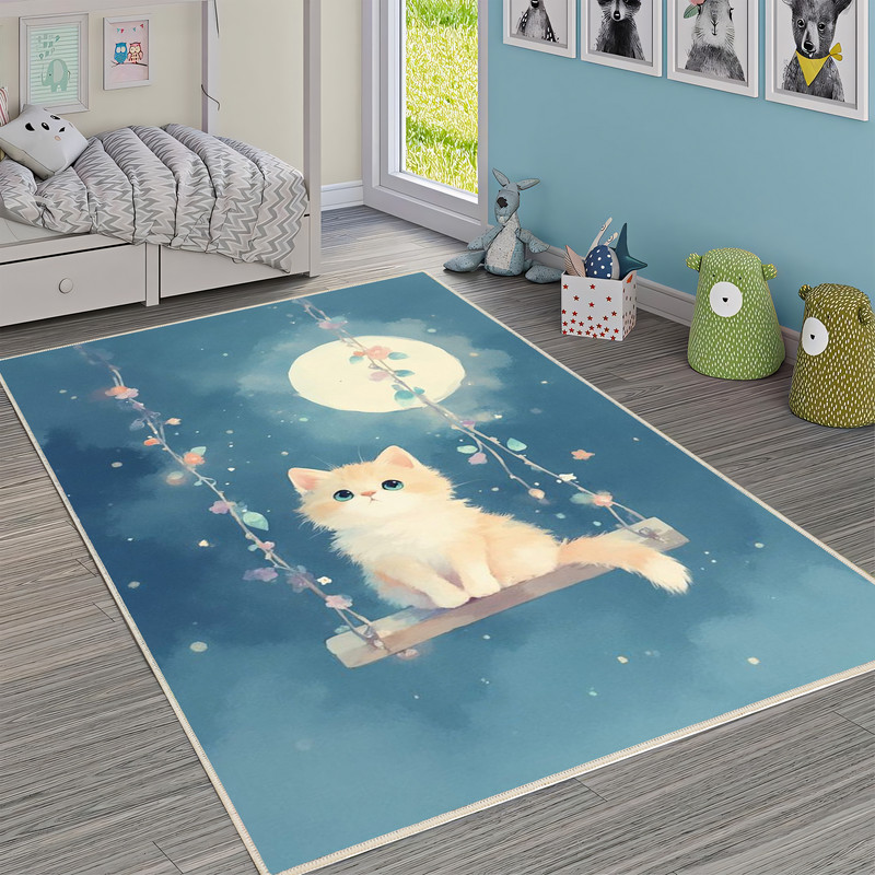 فرش ماشینی 1000 شانه زمینه آبی حاشیه آبی مدل اورکوم طرح اتاق کودک کد kids.9013.01