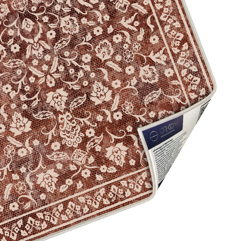 فرش ماشینی 1000 شانه زمینه زرشکی حاشیه قرمز مدل اورکوم مدل نانو چاپ بدون پرز طرح مینیمال مارال کد OR.1121.07