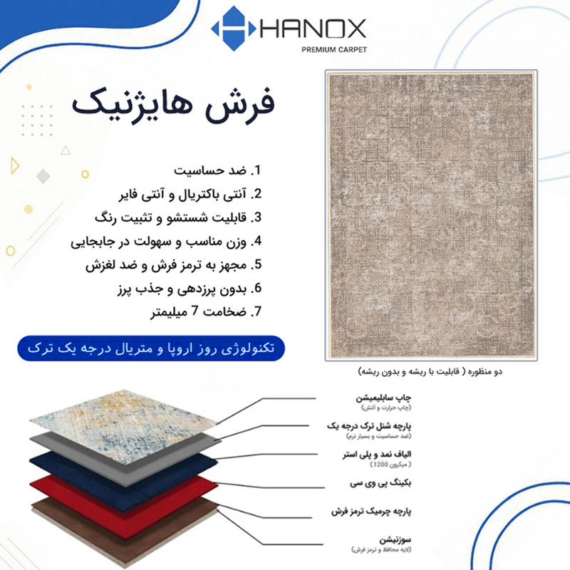 فرش ماشینی 1000 شانه هانوکس زمینه هلی حاشیه چندرنگ مدل 002.1